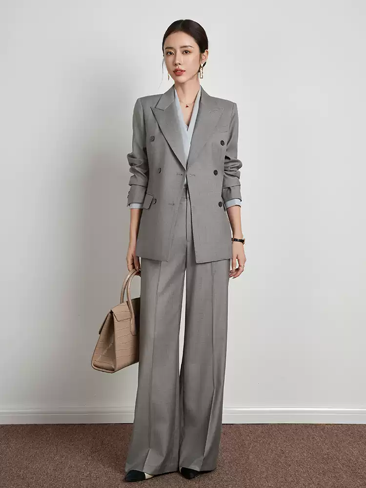 春秋新款灰色高端西装套装女商务气质显瘦女士西服阔腿裤职业套装