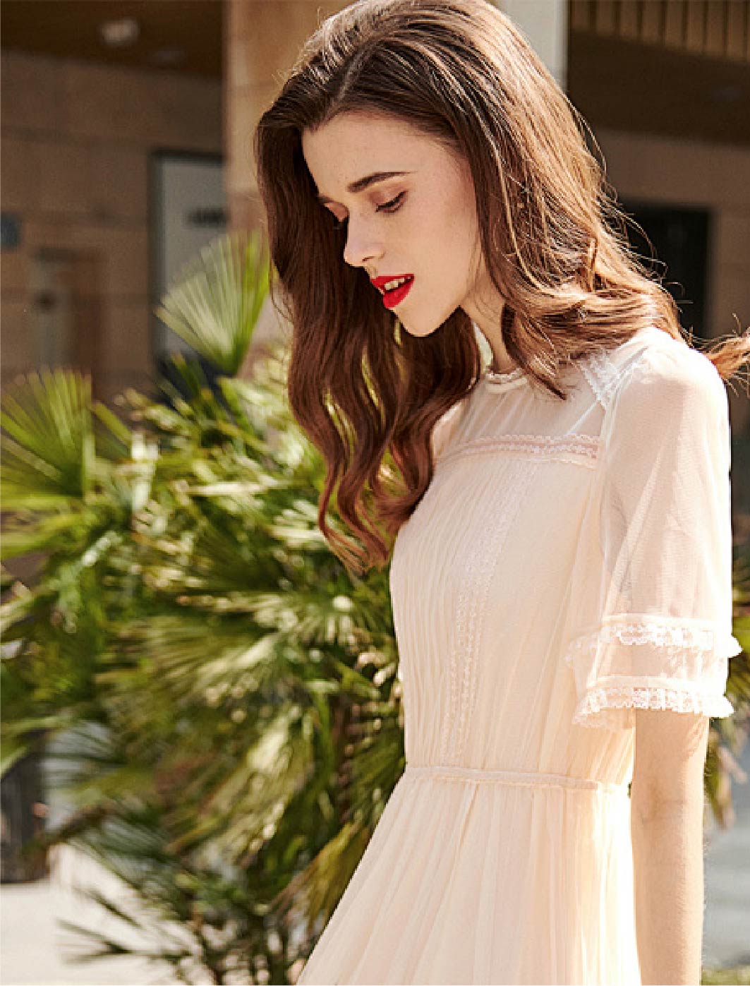 韩系极简风白色圆领短袖中长裙女夏季新款百搭连衣裙