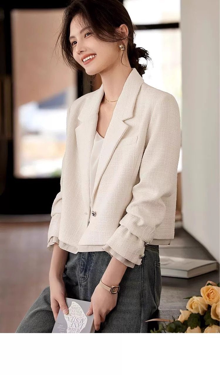 2025春秋休闲西装外套女新款女装肌理感小香风拼接短款上衣