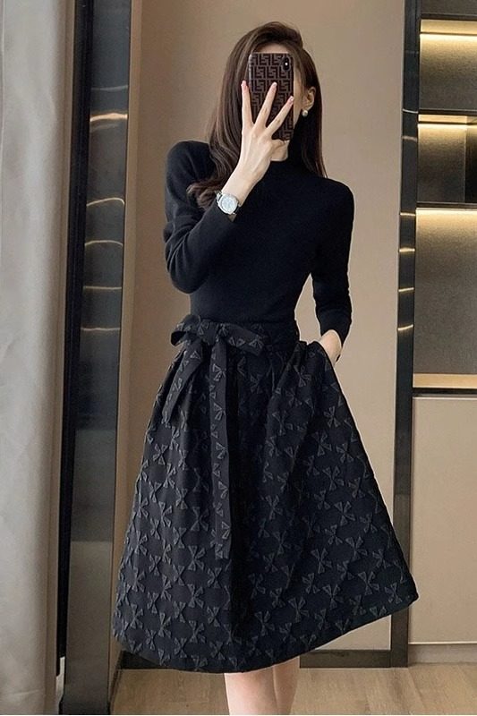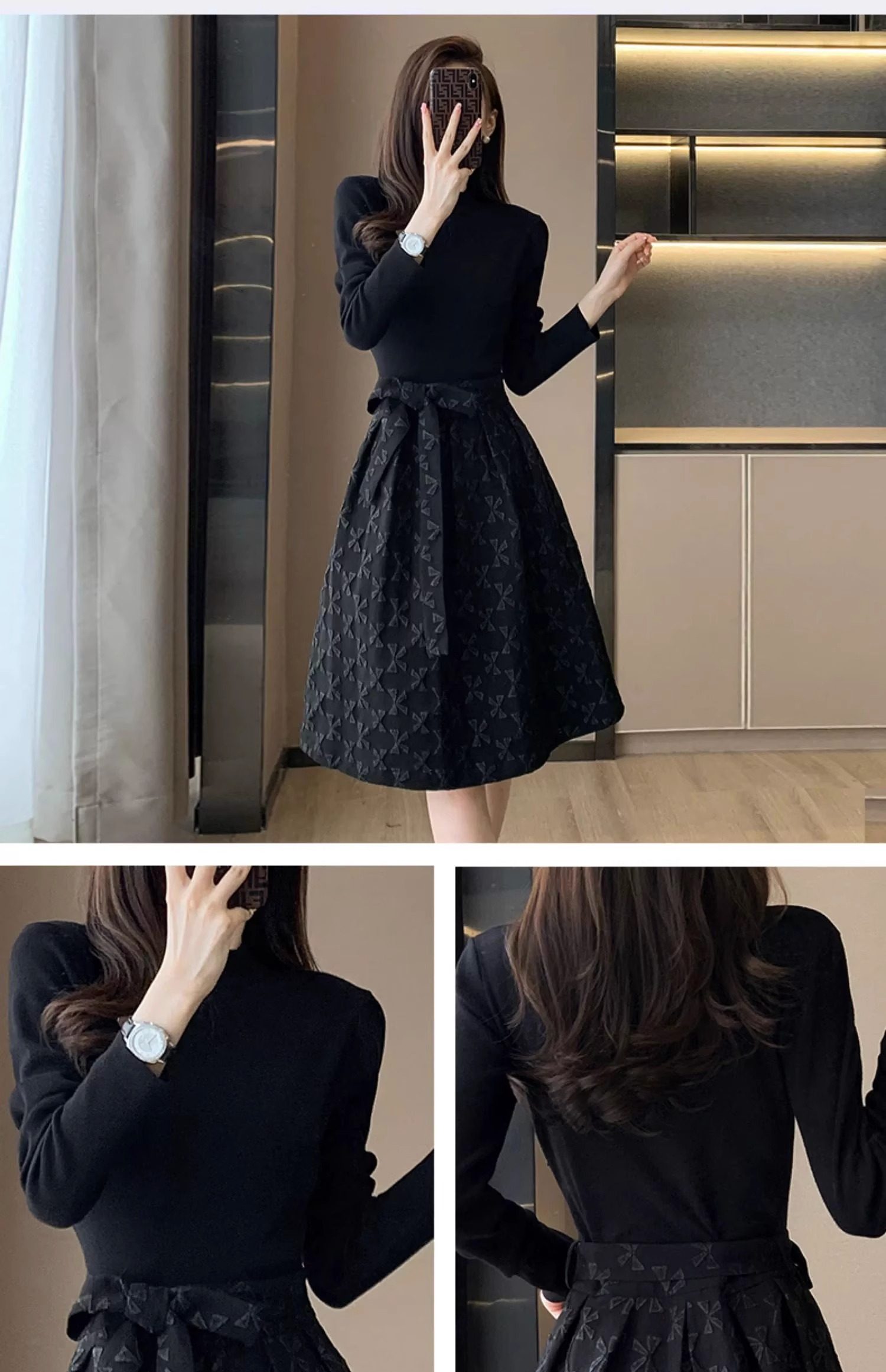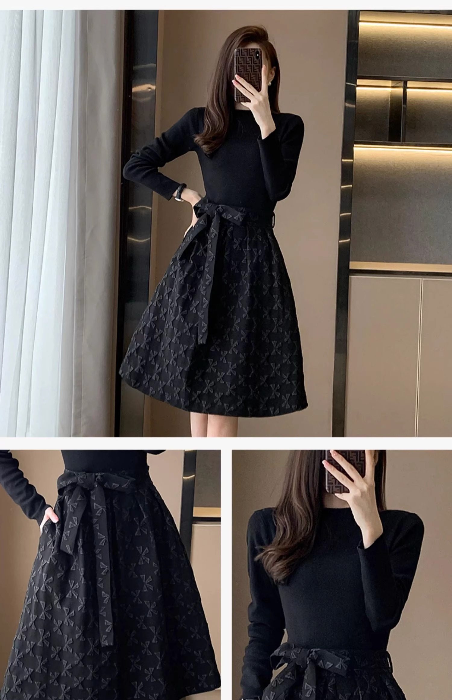 连衣裙女2025春秋款气质名媛高级感收腰显瘦黑裙子