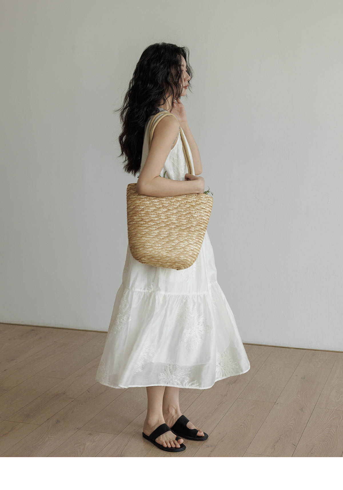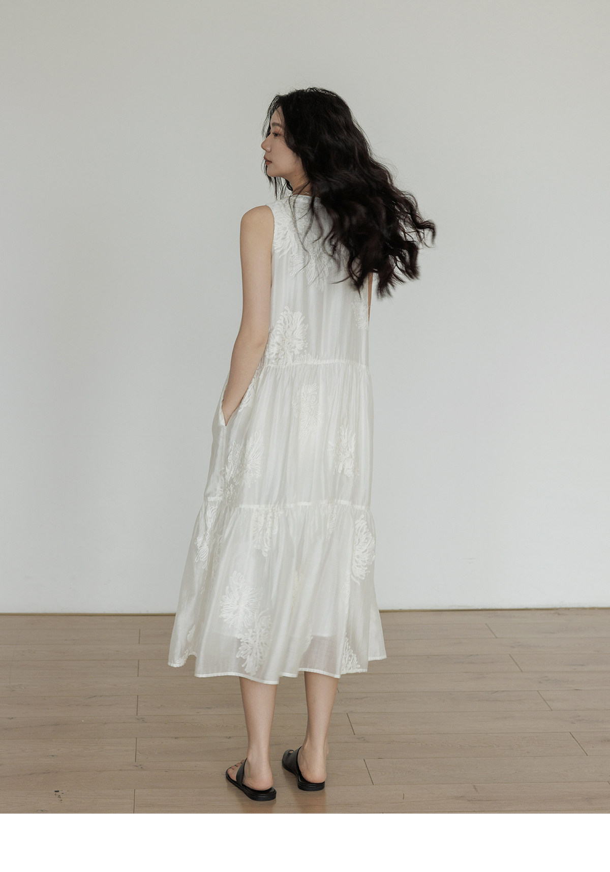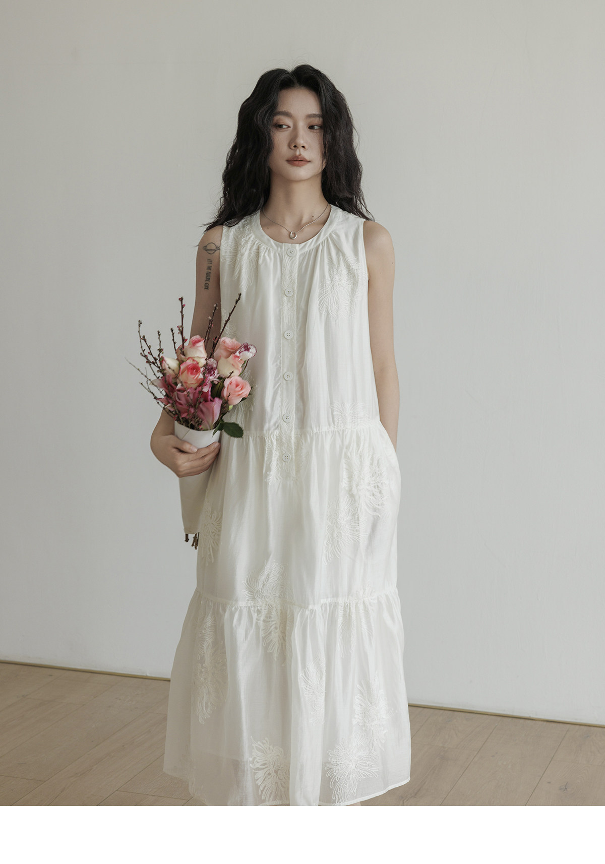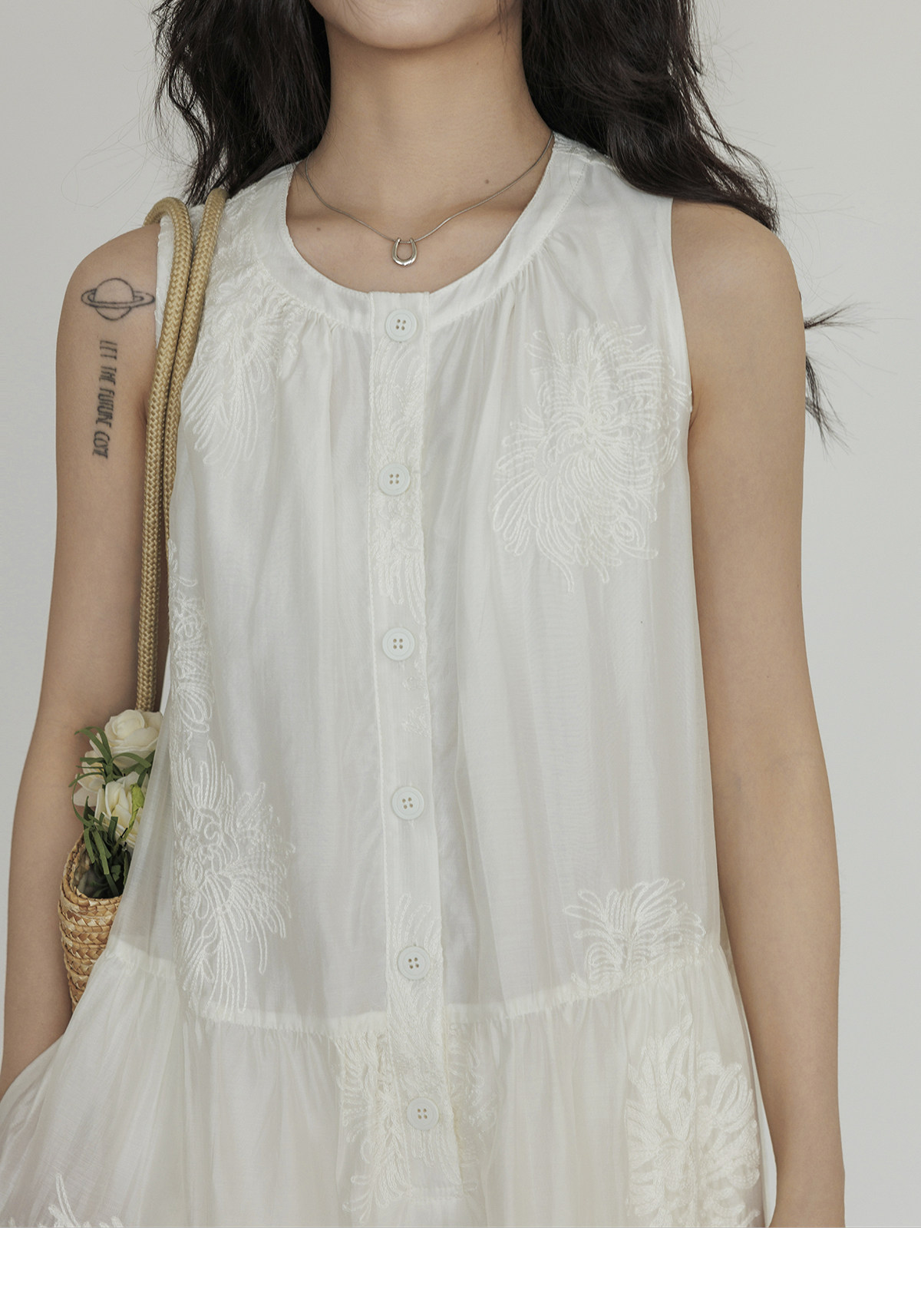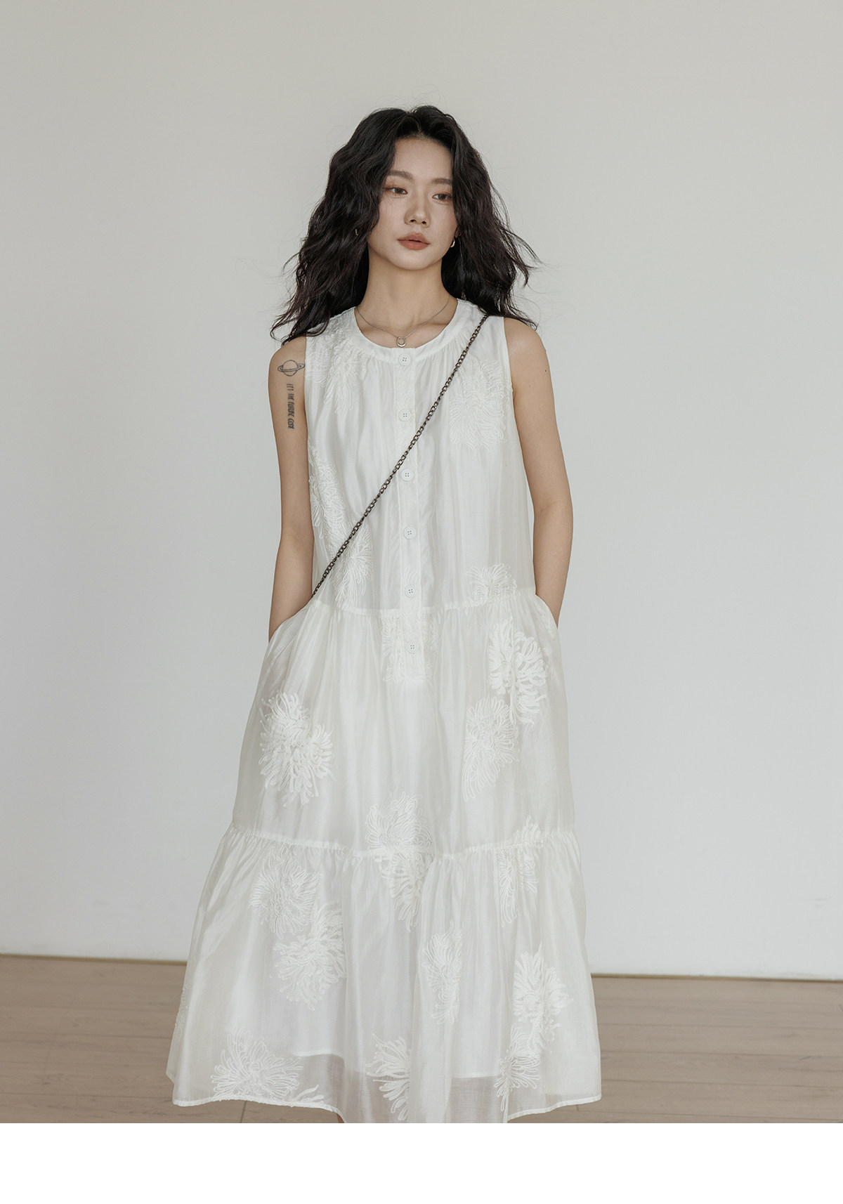 刺绣设计感新款慵懒宽松休闲度假长裙女圆领无袖背心连衣裙女