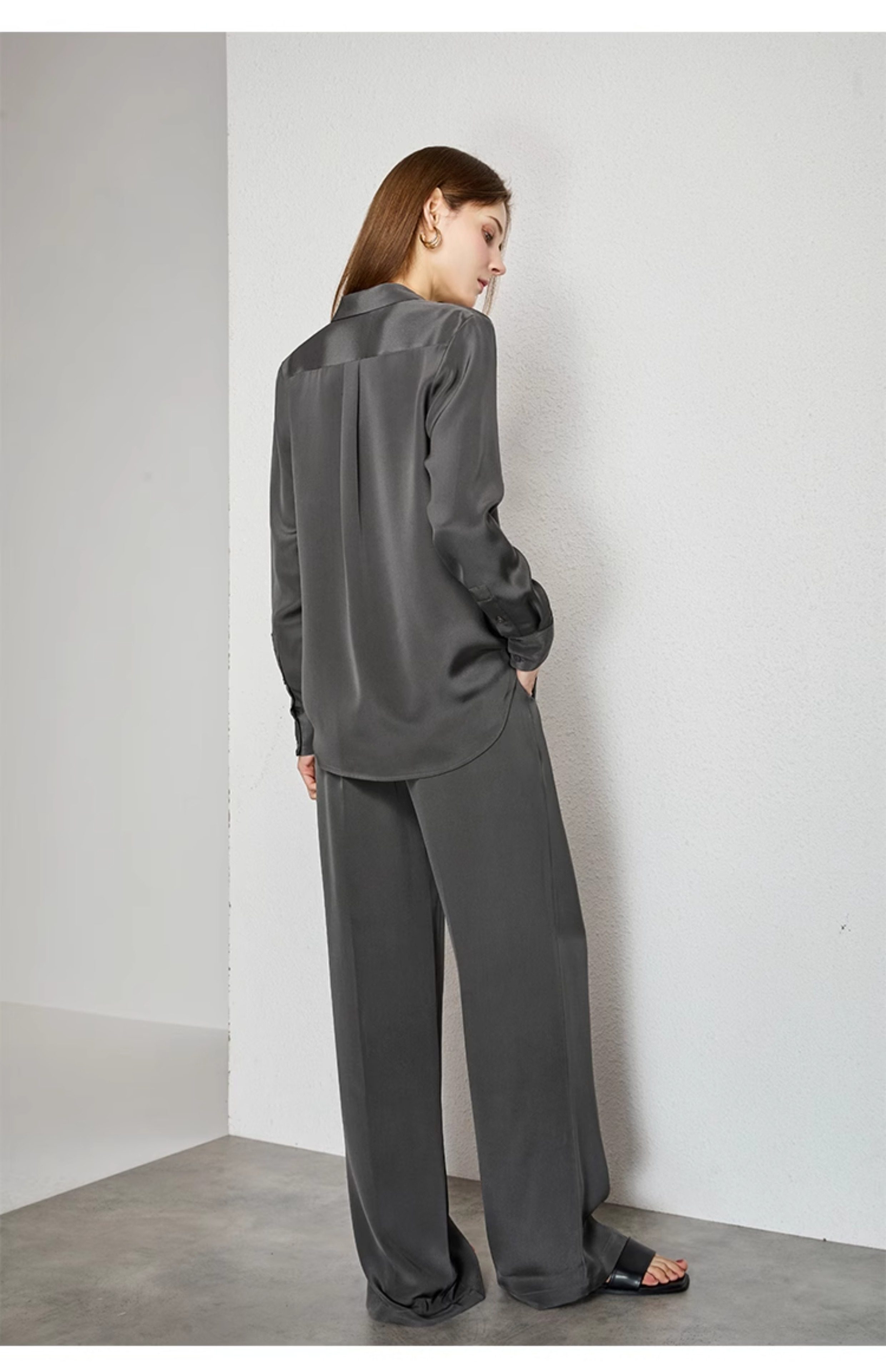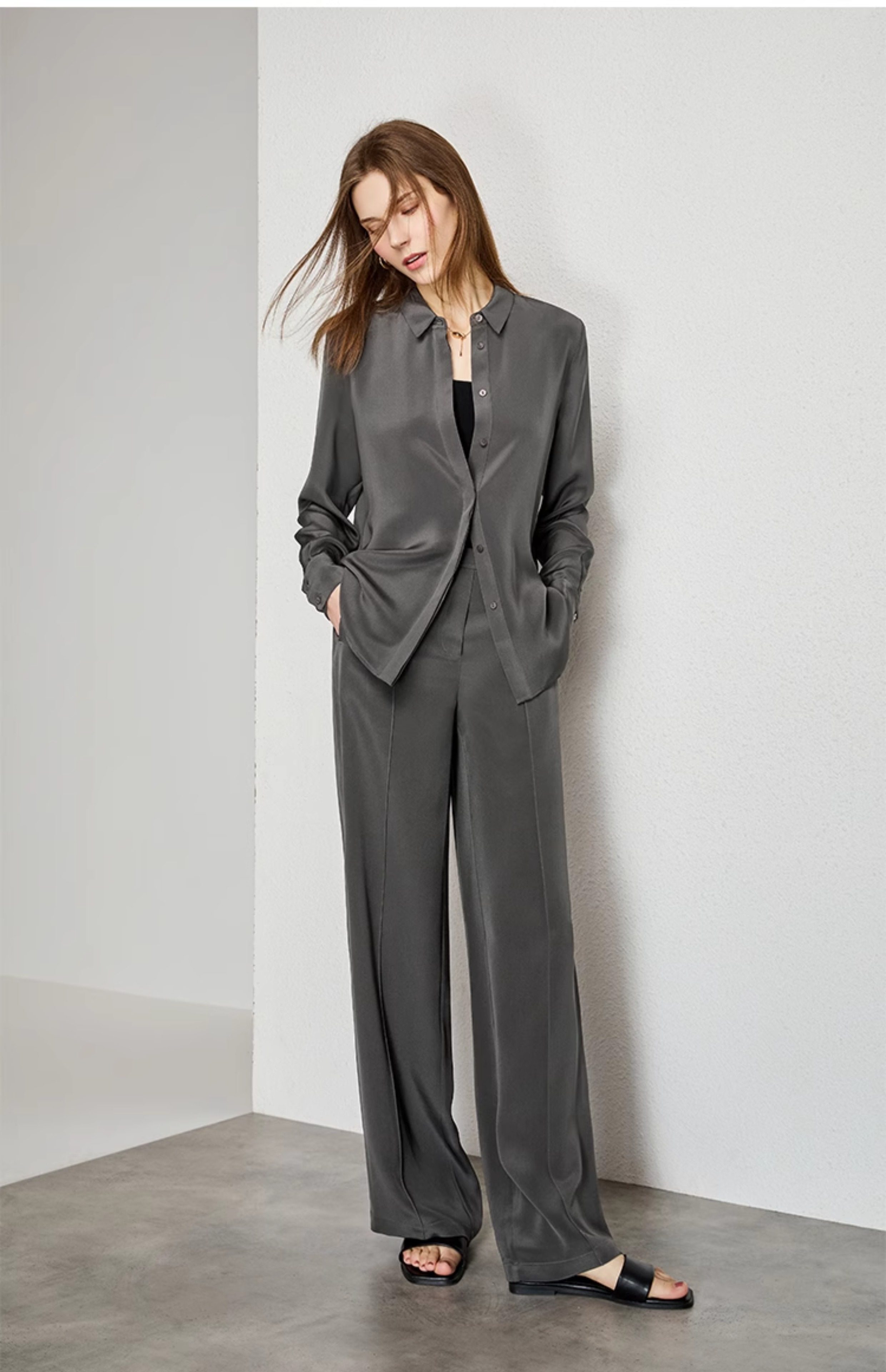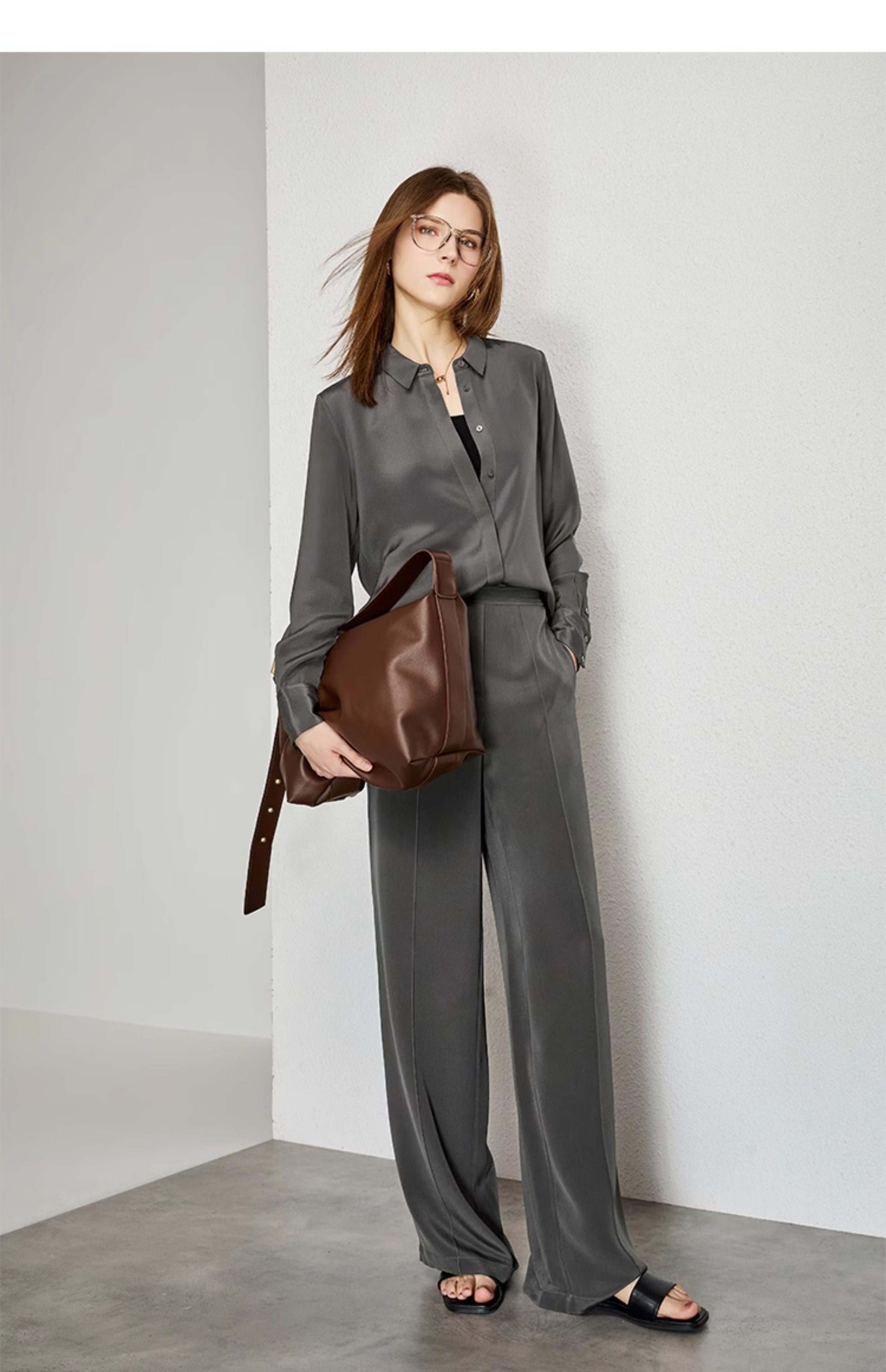 高智静奢通勤30姆米真丝重绉纯色重磅桑蚕丝衬衫长袖上衣女